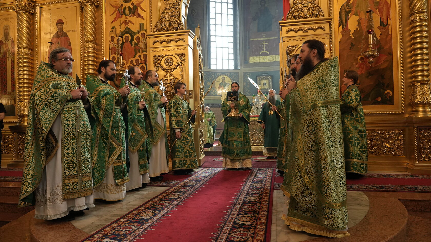 В этот знаменательный день торжественную Соборную литургию, проходившую в Спасо-Преображенском соборе, построенном в конце 19 века при руководстве и деятельном участии святого Пимена, возглавили наместник Николо-Угрешского монастыря викарий Святейшего Патриарха Московского и всея Руси епископ Егорьевский Мефодий и епископ Тольяттинский и Жигулевский Нестор, в прошлом выпускник Николо-Угрешской духовной семинарии. Преосвященным архиереям сослужили и.о. ректора Николо-Угрешской духовной семинарии иеромонах Лука (Пронских), председатель Синодального отдела по тюремному служению иерей Кирилл Марковский, духовенство обители, выпускники и преподаватели Николо-Угрешской духовной семинарии в священном сане.