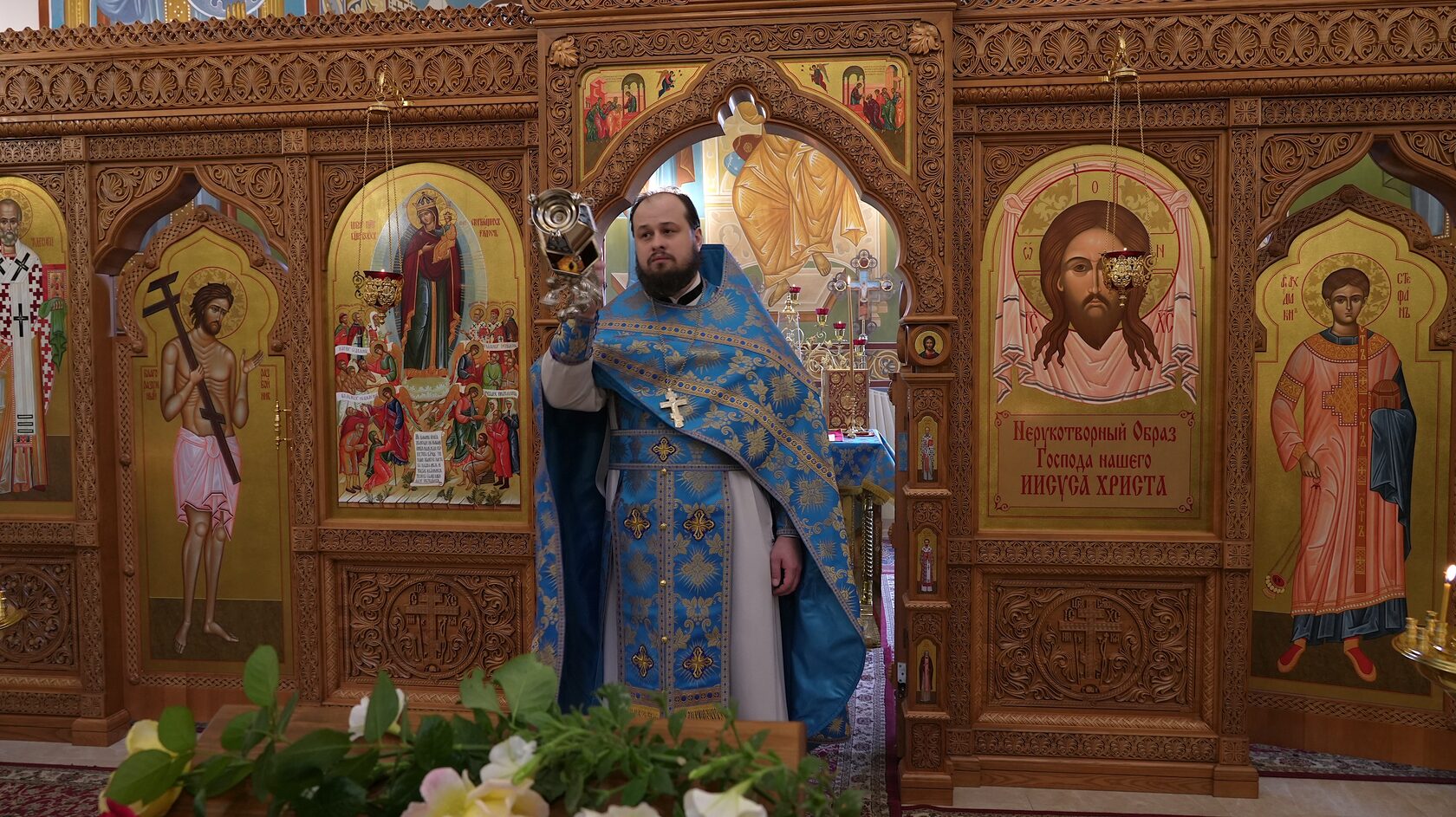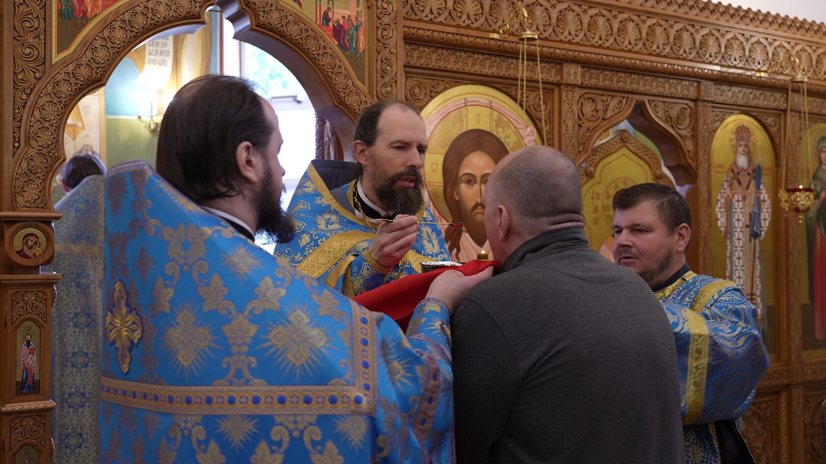 По окончании Литургии отец Кирилл Марковский обратился к собравшимся с пастырским словом и рассказал об истории и традициях праздника Покрова Пресвятой Богородицы, ведь до революции – это был особый день, когда посещали тех, кто находится в темнице.