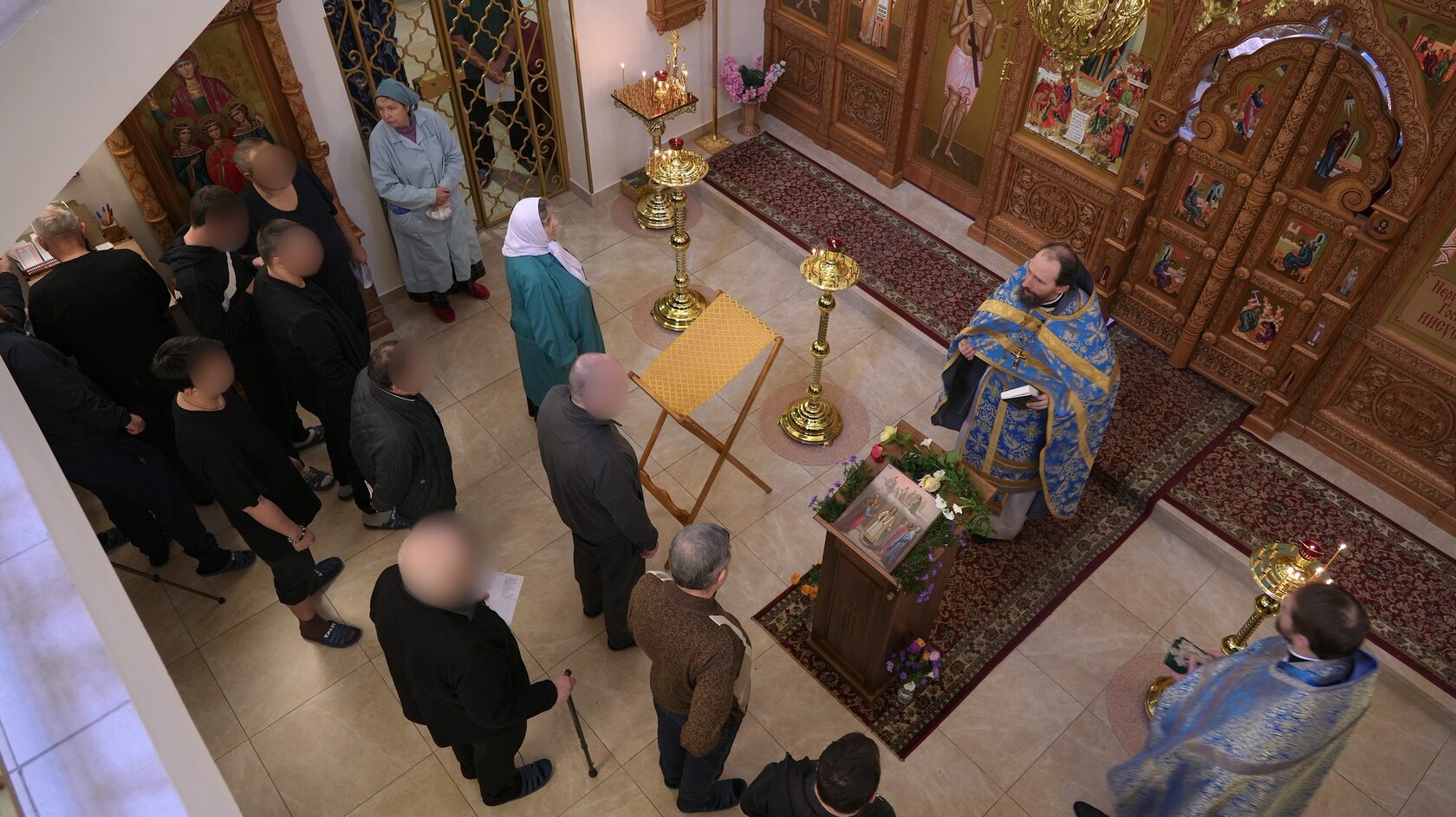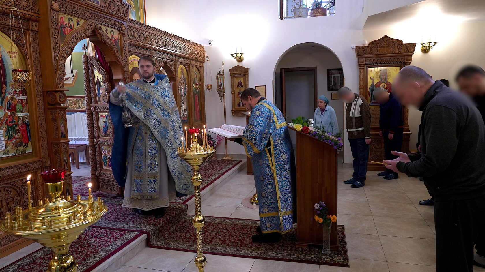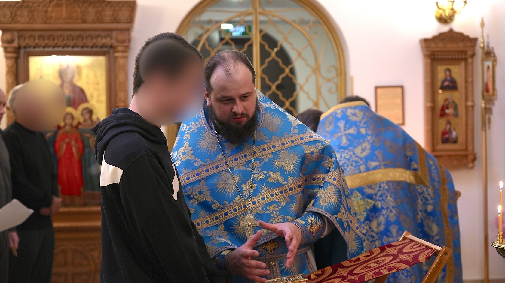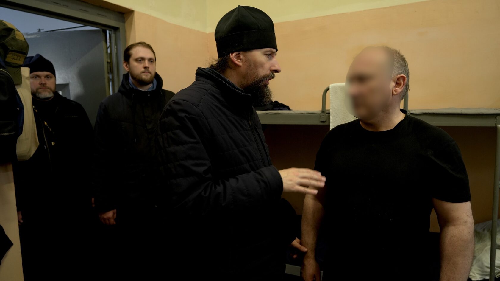 После службы глава Синодального отдела по тюремному служению иерей Кирилл Марковский, помощник начальника ГУФСИН России по организации работы с верующими иерей Флорентий Александров и помощник начальника СИЗО-1 ГУФСИН г. Москвы по работе с верующими иерей Георгий Мицинский посетили заключенных, которые не имели возможности присутствовать в храме.