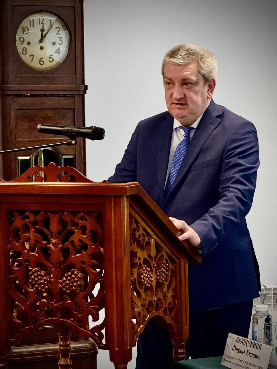 С докладом о деятельности тюремного духовенства выступил председатель Межъепархиального отдела по тюремному служению Московской митрополии, помощник начальника ГУФСИН по организации работы с верующими иерей Михаил Куземка.