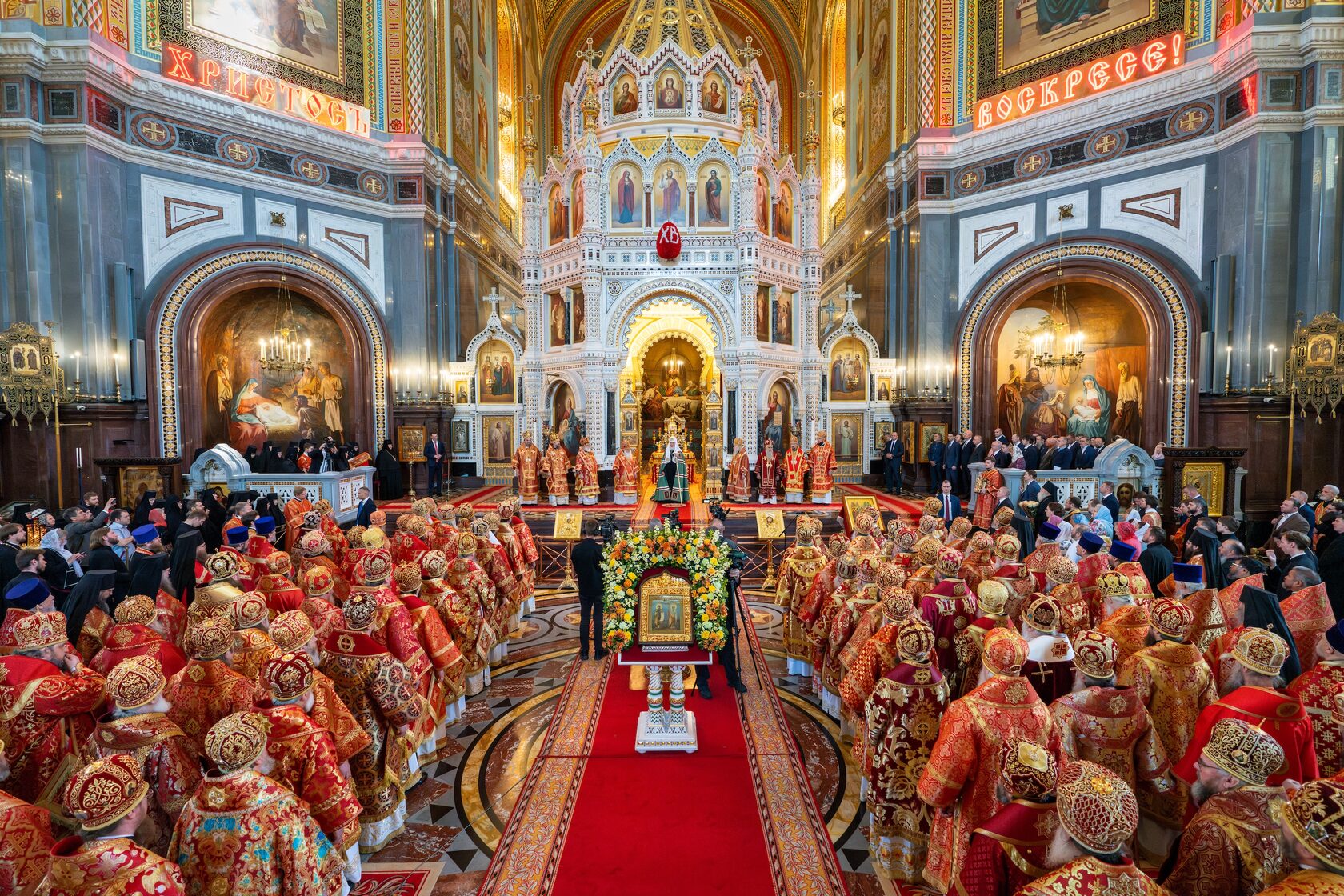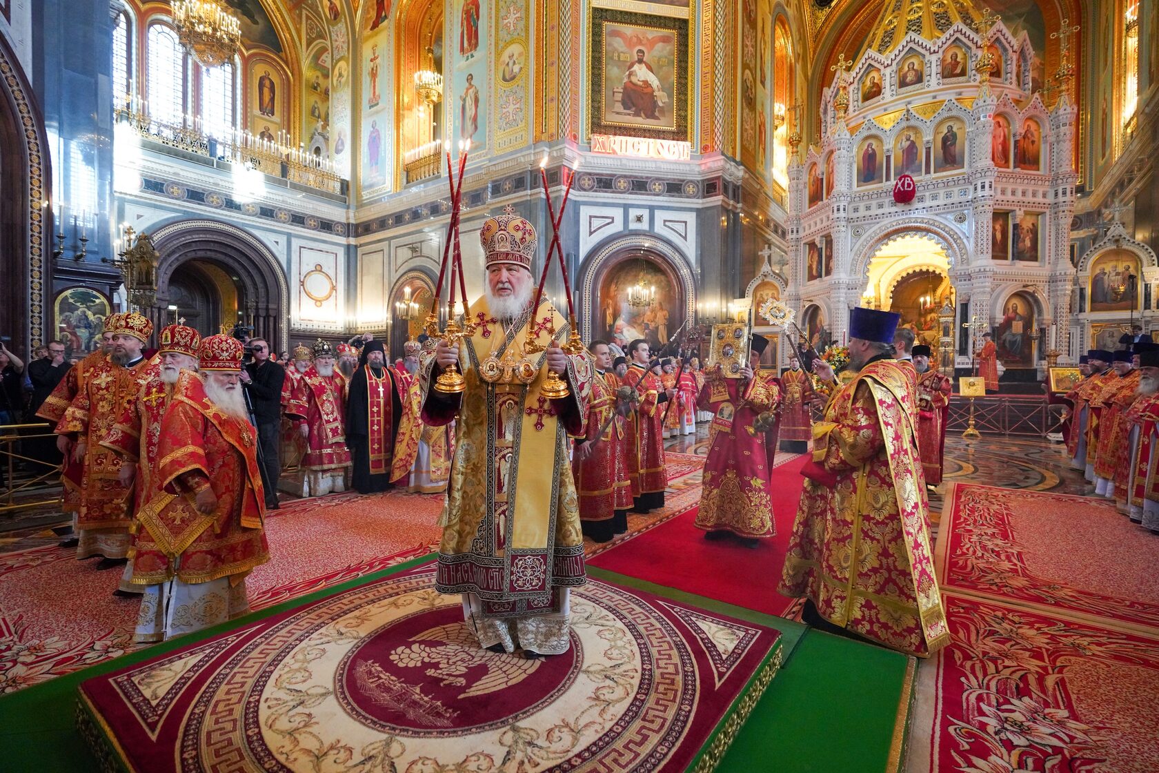 «Дорогие владыки, отцы, братья и сестры, еще раз поздравляю всех вас с этим замечательным днем. Думаю, на каждого из нас оказывает особое влияние соборное богослужение. Когда архиереи вместе совершают Божественную службу, они действительно являют образ Соборной Апостольской Церкви. Дай Бог, чтобы никакие человеческие усилия, направленные на ослабление нашего братства, на разрушение соборности нашей Церкви, никогда не возымели успеха. Дай Бог, чтобы через это соборное служение и через это соборное деяние укреплялись вера и духовная жизнь в нашем народе. И дай Бог, чтобы в ответ на наши скромные усилия действительно процветала Русь Святая — в вере православной, благочестии и чистоте. Аминь. Христос Воскресе!» — сказал Святейший Владыка, напутствуя участников богослужения.