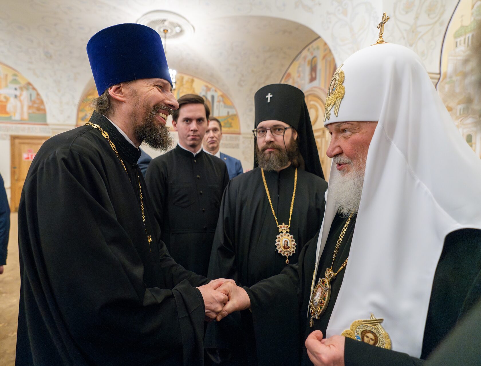 От лица Президента Российской Федерации В.В. Путина Святейшего Патриарха Кирилла поздравил полномочный представитель Президента РФ в Центральном федеральном округе И.О. Щеголев, от имени Правительства Российской Федерации — заместитель председателя Правительства РФ Д.Н. Чернышенко, который огласил поздравление председателя Правительства РФ М.В. Мишустина.