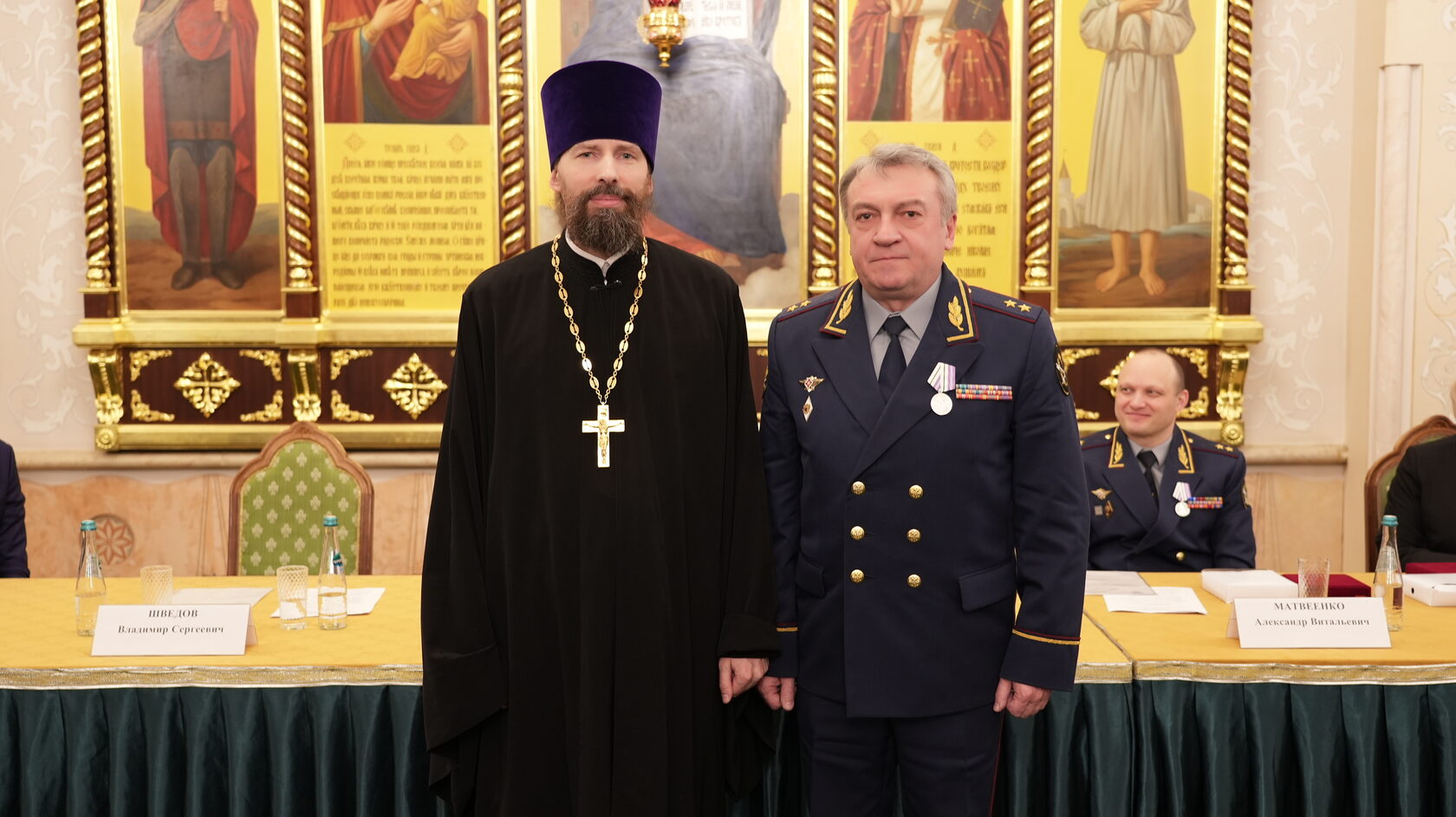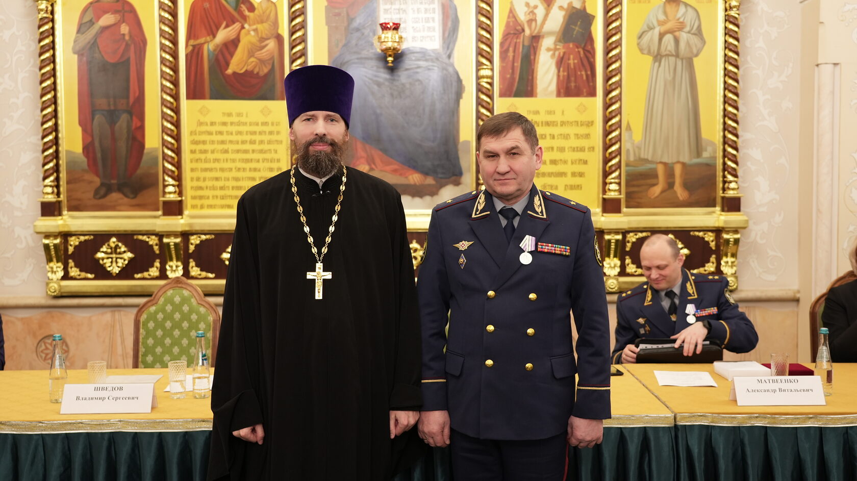 Далее состоялось выступление заместителя директора ФСИН России Александра Матвеенко, который уделил особое внимание роли духовенства не только в работе с находящимися в изоляции, но и с личным составом, а также с родственниками погибших при исполнении служебных обязанностей сотрудников УИС.