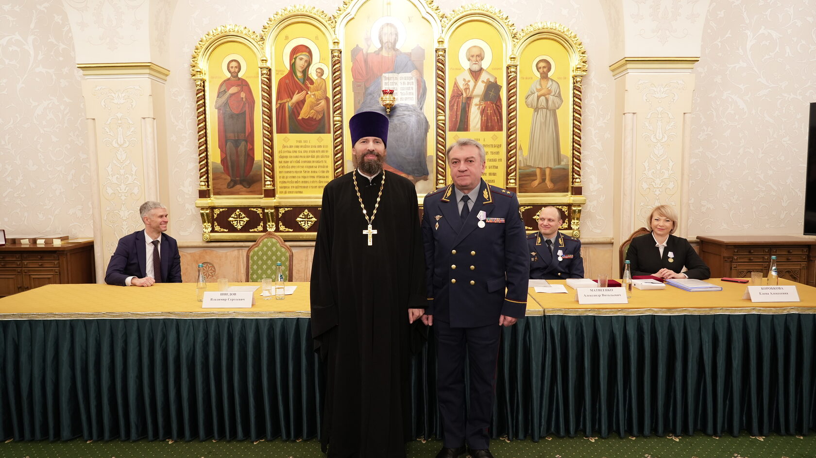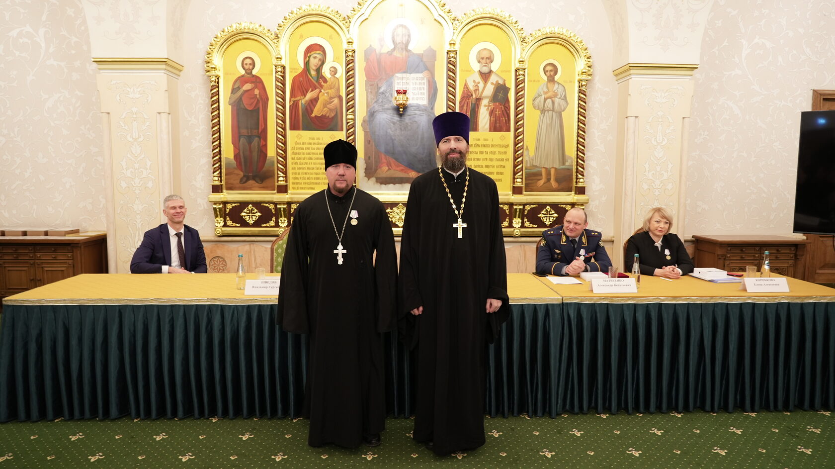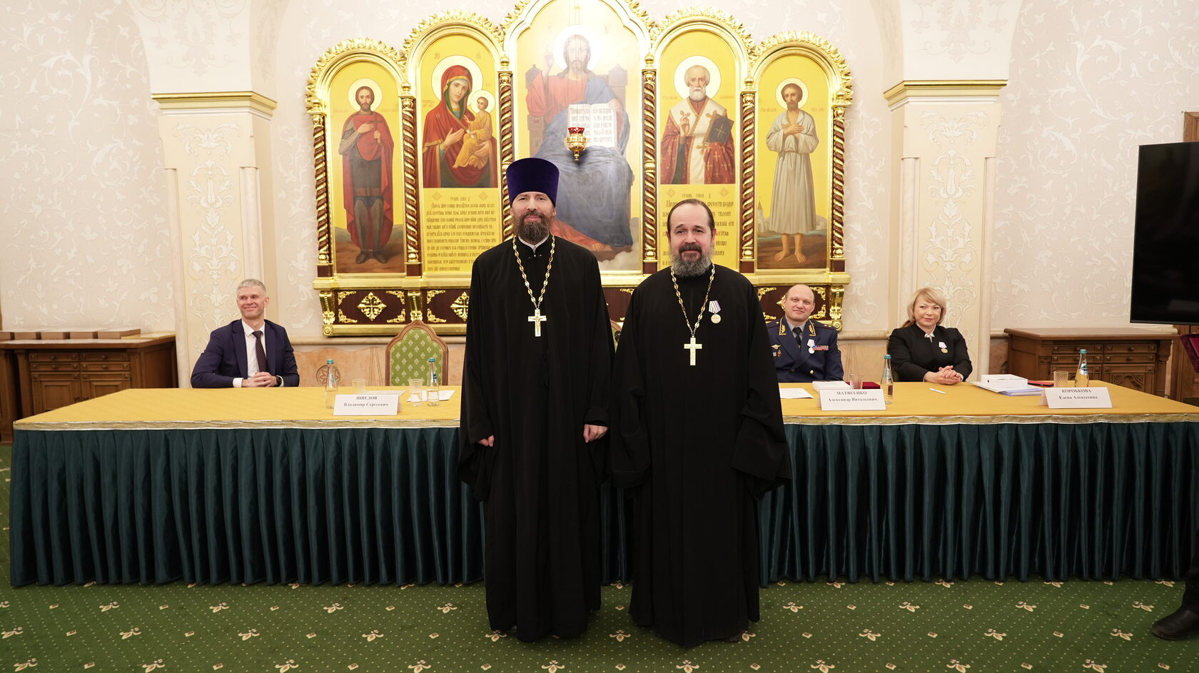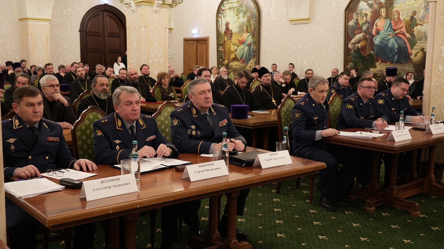 заместитель Министра юстиции Российской Федерации Вадим Баланин, директор департамента государственной политики в сфере уголовно-исполнительной системы Минюста России Владимир Шведов, заместитель директора ФСИН России генерал-майор внутренней службы Александр Матвеенко, начальник Управления организации исполнения наказаний, не связанных с изоляцией осужденных от общества ФСИН России генерал-майор внутренней службы Елена Коробкова, начальник Управления воспитательной, социальной и психологической работы ФСИН России полковник внутренней службы Сергей Нечаев, врио начальника Управления цифровой трансформации ФСИН России полковник внутренней службы Сергей Лебедев, начальник ГУФСИН России по г. Москве генерал-лейтенант внутренней службы Сергей Мороз, начальник Академии ФСИН России генерал-лейтенант внутренней службы Сергей Никитюк, начальник Университета ФСИН России Александр Вотинов, сотрудники Синодального отдела по тюремному служению, ФСИН России, тюремное духовенство – помощники начальников территориальных органов по работе с верующими, помощники начальников СИЗО по работе с верующими, помощники начальников исправительных учреждений по работе с верующими, руководители епархиальных отделов по тюремному служению, руководители и сотрудники некоммерческих православных организаций, православные волонтеры, меценаты.