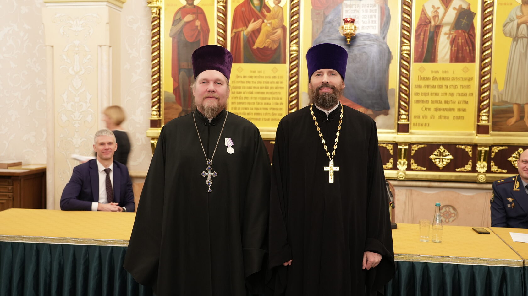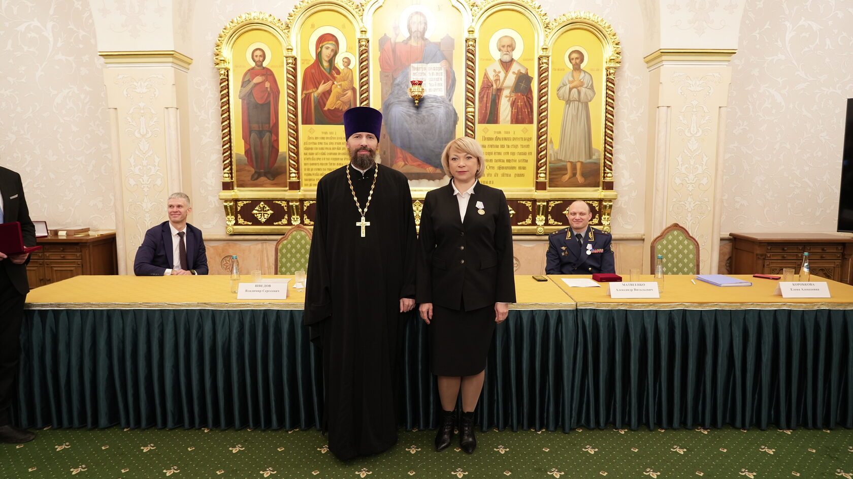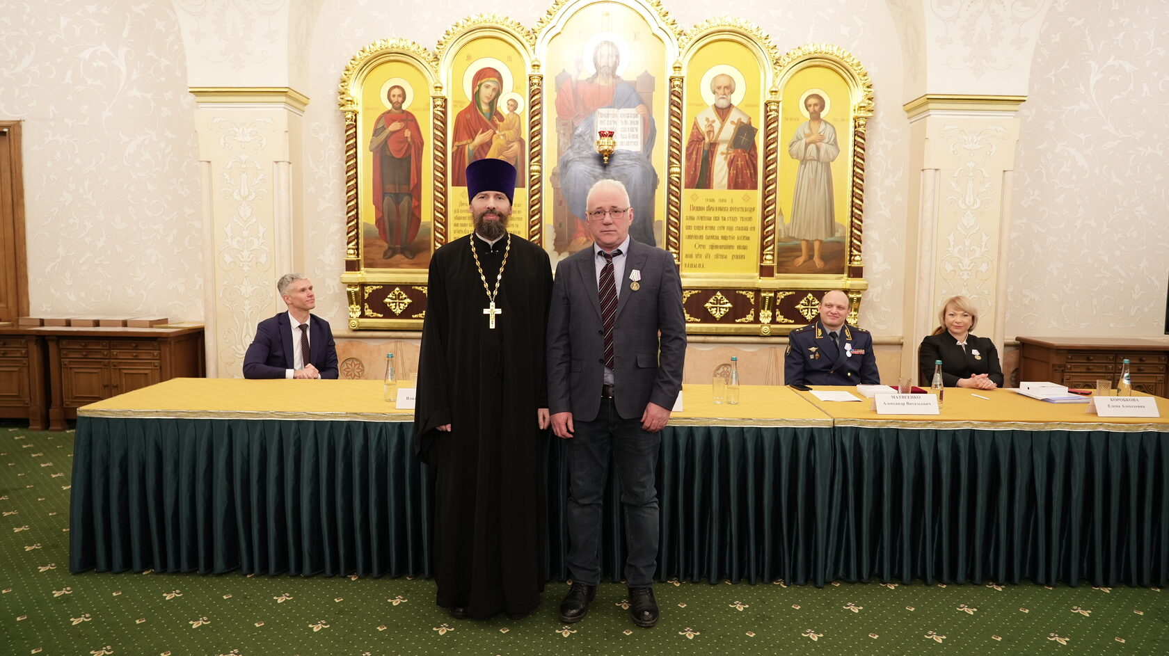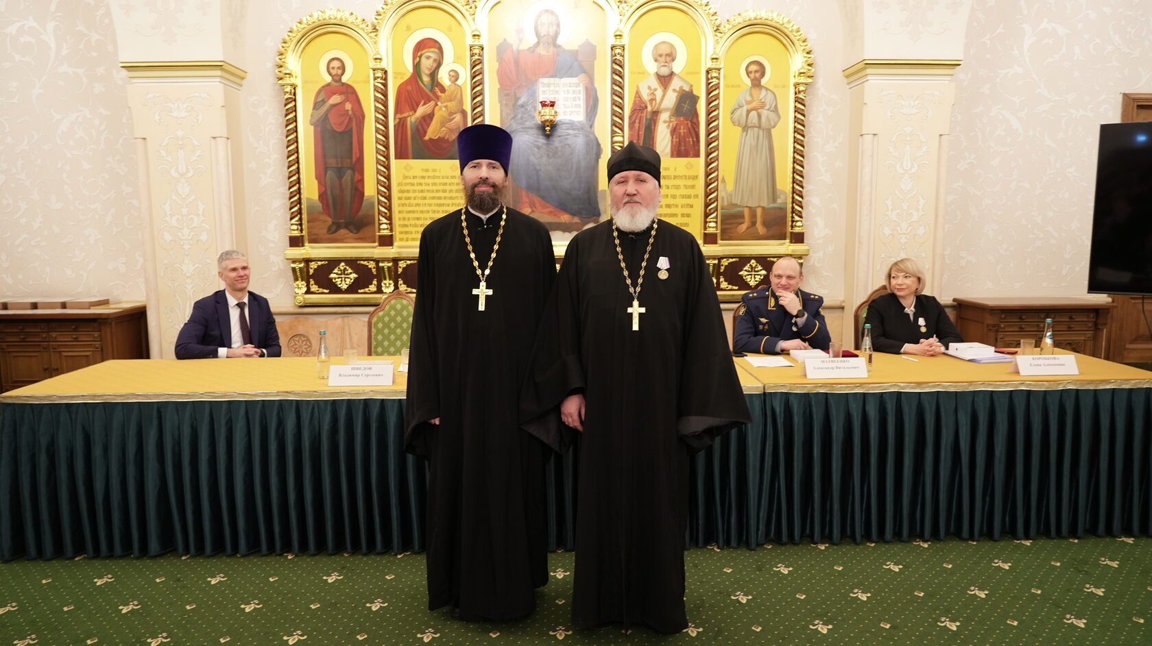 заместитель Министра юстиции Российской Федерации Вадим Баланин, директор департамента государственной политики в сфере уголовно-исполнительной системы Минюста России Владимир Шведов, заместитель директора ФСИН России генерал-майор внутренней службы Александр Матвеенко, начальник Управления организации исполнения наказаний, не связанных с изоляцией осужденных от общества ФСИН России генерал-майор внутренней службы Елена Коробкова, начальник Управления воспитательной, социальной и психологической работы ФСИН России полковник внутренней службы Сергей Нечаев, врио начальника Управления цифровой трансформации ФСИН России полковник внутренней службы Сергей Лебедев, начальник ГУФСИН России по г. Москве генерал-лейтенант внутренней службы Сергей Мороз, начальник Академии ФСИН России генерал-лейтенант внутренней службы Сергей Никитюк, начальник Университета ФСИН России Александр Вотинов, сотрудники Синодального отдела по тюремному служению, ФСИН России, тюремное духовенство – помощники начальников территориальных органов по работе с верующими, помощники начальников СИЗО по работе с верующими, помощники начальников исправительных учреждений по работе с верующими, руководители епархиальных отделов по тюремному служению, руководители и сотрудники некоммерческих православных организаций, православные волонтеры, меценаты.