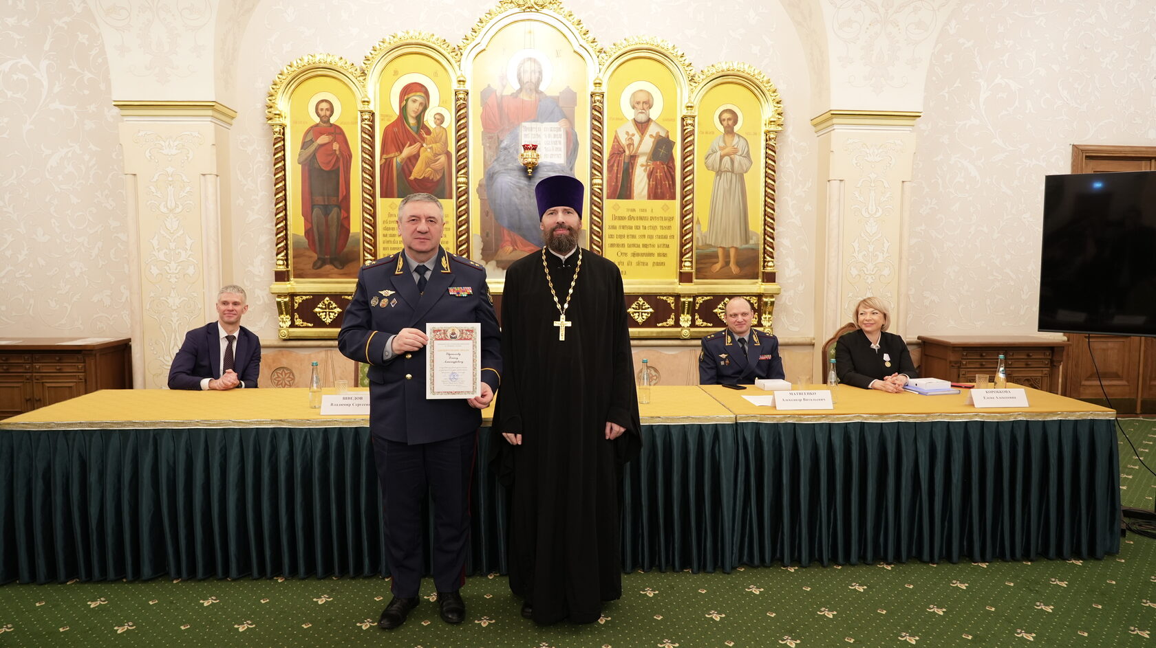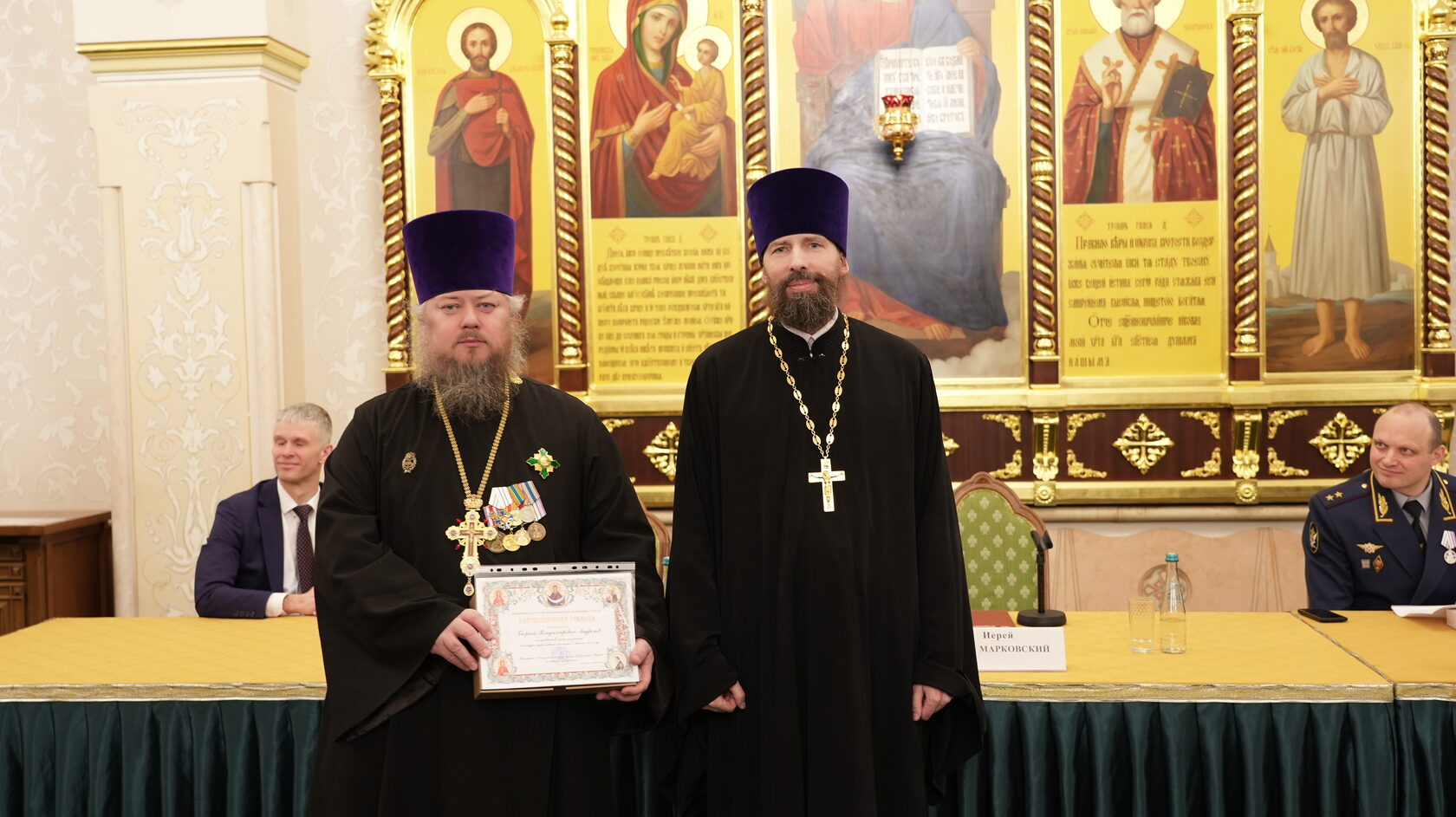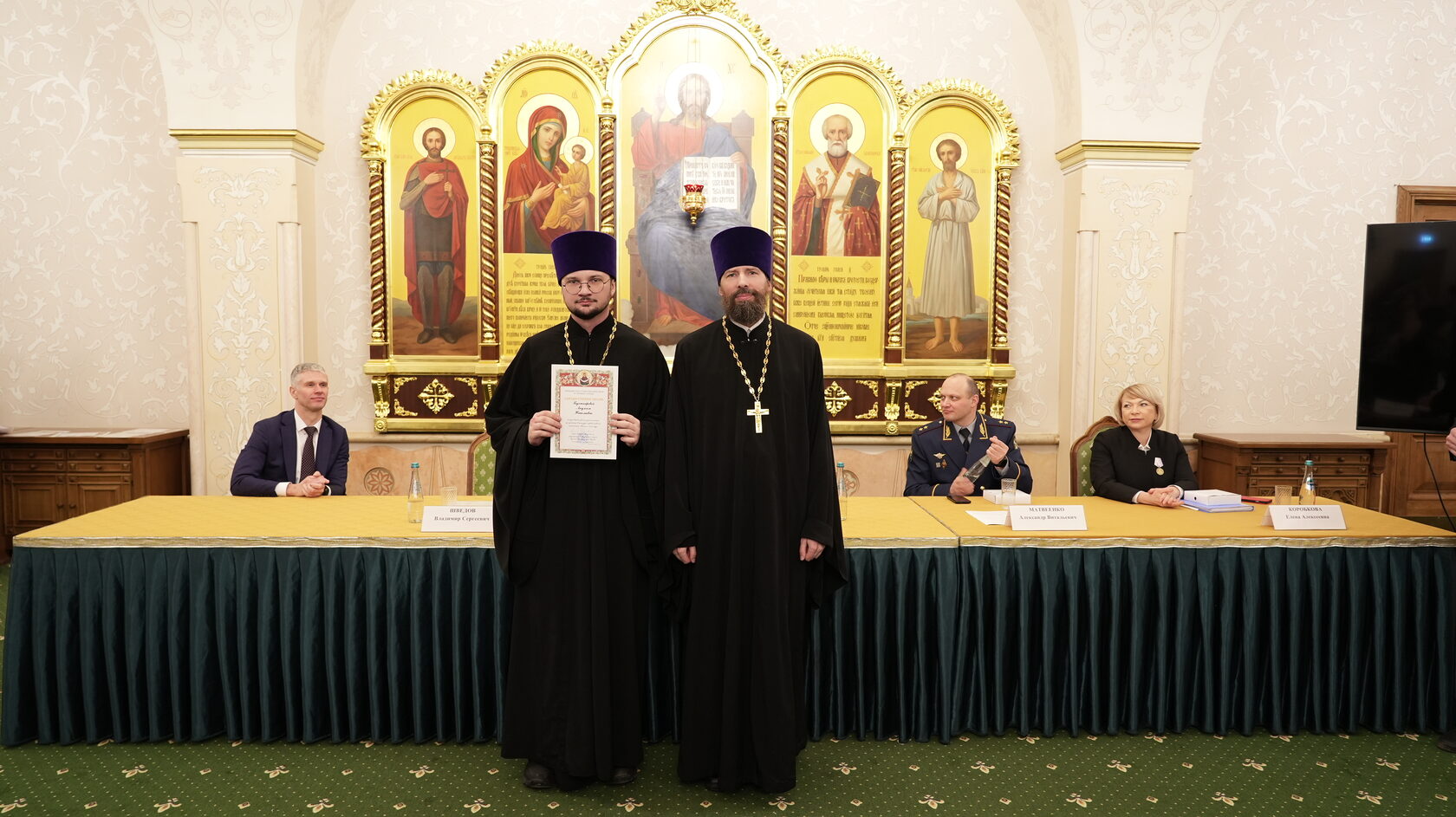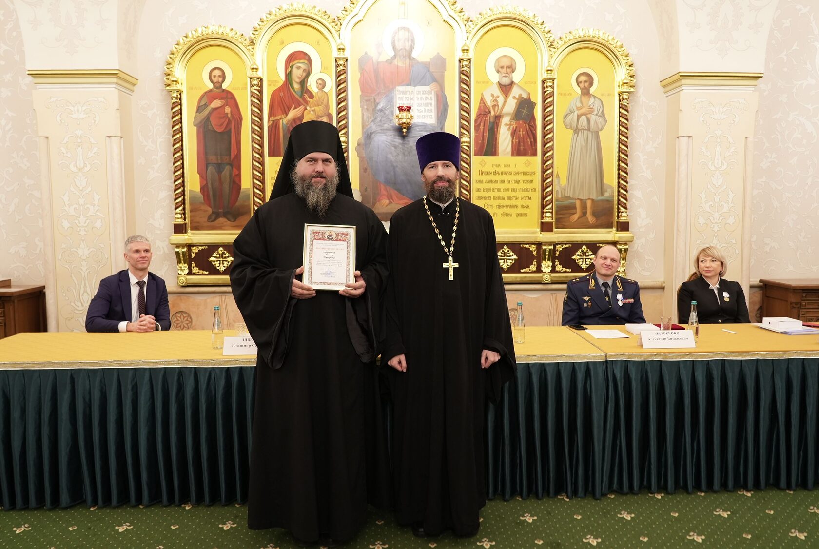 заместитель Министра юстиции Российской Федерации Вадим Баланин, директор департамента государственной политики в сфере уголовно-исполнительной системы Минюста России Владимир Шведов, заместитель директора ФСИН России генерал-майор внутренней службы Александр Матвеенко, начальник Управления организации исполнения наказаний, не связанных с изоляцией осужденных от общества ФСИН России генерал-майор внутренней службы Елена Коробкова, начальник Управления воспитательной, социальной и психологической работы ФСИН России полковник внутренней службы Сергей Нечаев, врио начальника Управления цифровой трансформации ФСИН России полковник внутренней службы Сергей Лебедев, начальник ГУФСИН России по г. Москве генерал-лейтенант внутренней службы Сергей Мороз, начальник Академии ФСИН России генерал-лейтенант внутренней службы Сергей Никитюк, начальник Университета ФСИН России Александр Вотинов, сотрудники Синодального отдела по тюремному служению, ФСИН России, тюремное духовенство – помощники начальников территориальных органов по работе с верующими, помощники начальников СИЗО по работе с верующими, помощники начальников исправительных учреждений по работе с верующими, руководители епархиальных отделов по тюремному служению, руководители и сотрудники некоммерческих православных организаций, православные волонтеры, меценаты.
