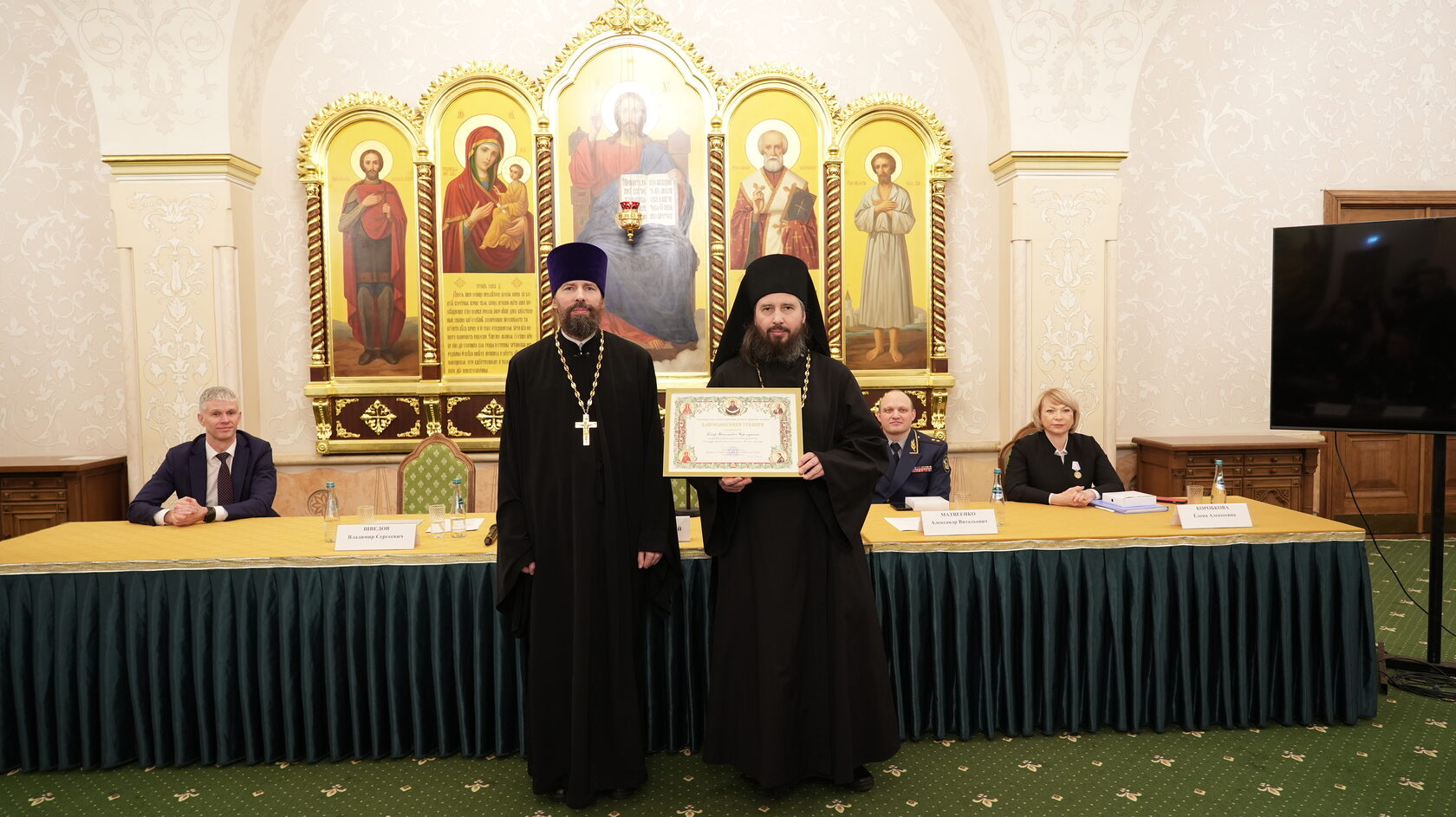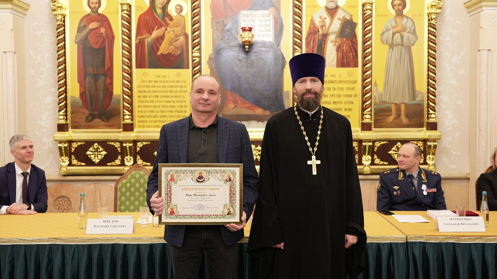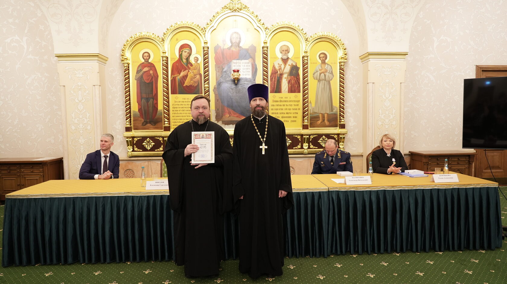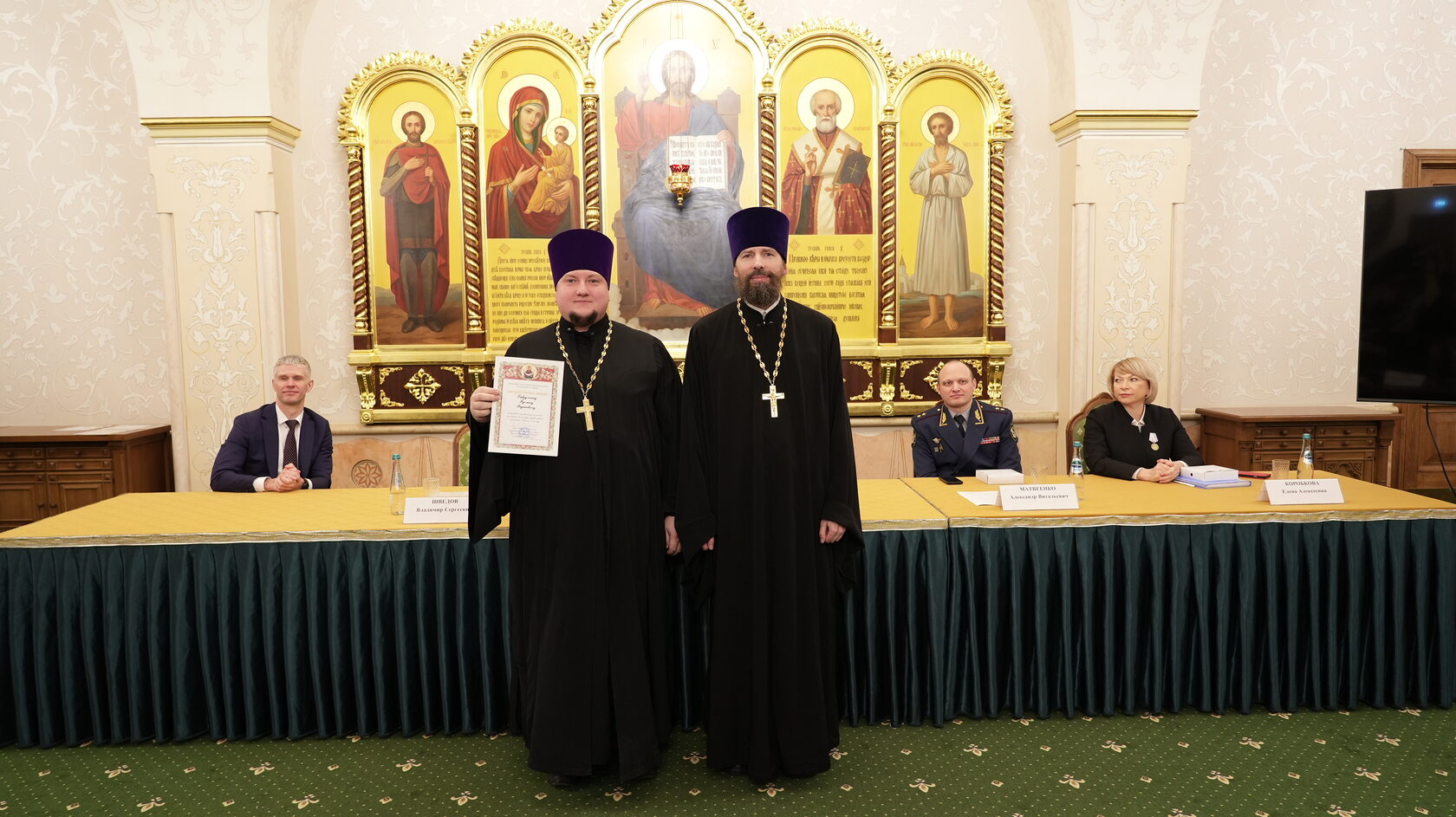 заместитель Министра юстиции Российской Федерации Вадим Баланин, директор департамента государственной политики в сфере уголовно-исполнительной системы Минюста России Владимир Шведов, заместитель директора ФСИН России генерал-майор внутренней службы Александр Матвеенко, начальник Управления организации исполнения наказаний, не связанных с изоляцией осужденных от общества ФСИН России генерал-майор внутренней службы Елена Коробкова, начальник Управления воспитательной, социальной и психологической работы ФСИН России полковник внутренней службы Сергей Нечаев, врио начальника Управления цифровой трансформации ФСИН России полковник внутренней службы Сергей Лебедев, начальник ГУФСИН России по г. Москве генерал-лейтенант внутренней службы Сергей Мороз, начальник Академии ФСИН России генерал-лейтенант внутренней службы Сергей Никитюк, начальник Университета ФСИН России Александр Вотинов, сотрудники Синодального отдела по тюремному служению, ФСИН России, тюремное духовенство – помощники начальников территориальных органов по работе с верующими, помощники начальников СИЗО по работе с верующими, помощники начальников исправительных учреждений по работе с верующими, руководители епархиальных отделов по тюремному служению, руководители и сотрудники некоммерческих православных организаций, православные волонтеры, меценаты.