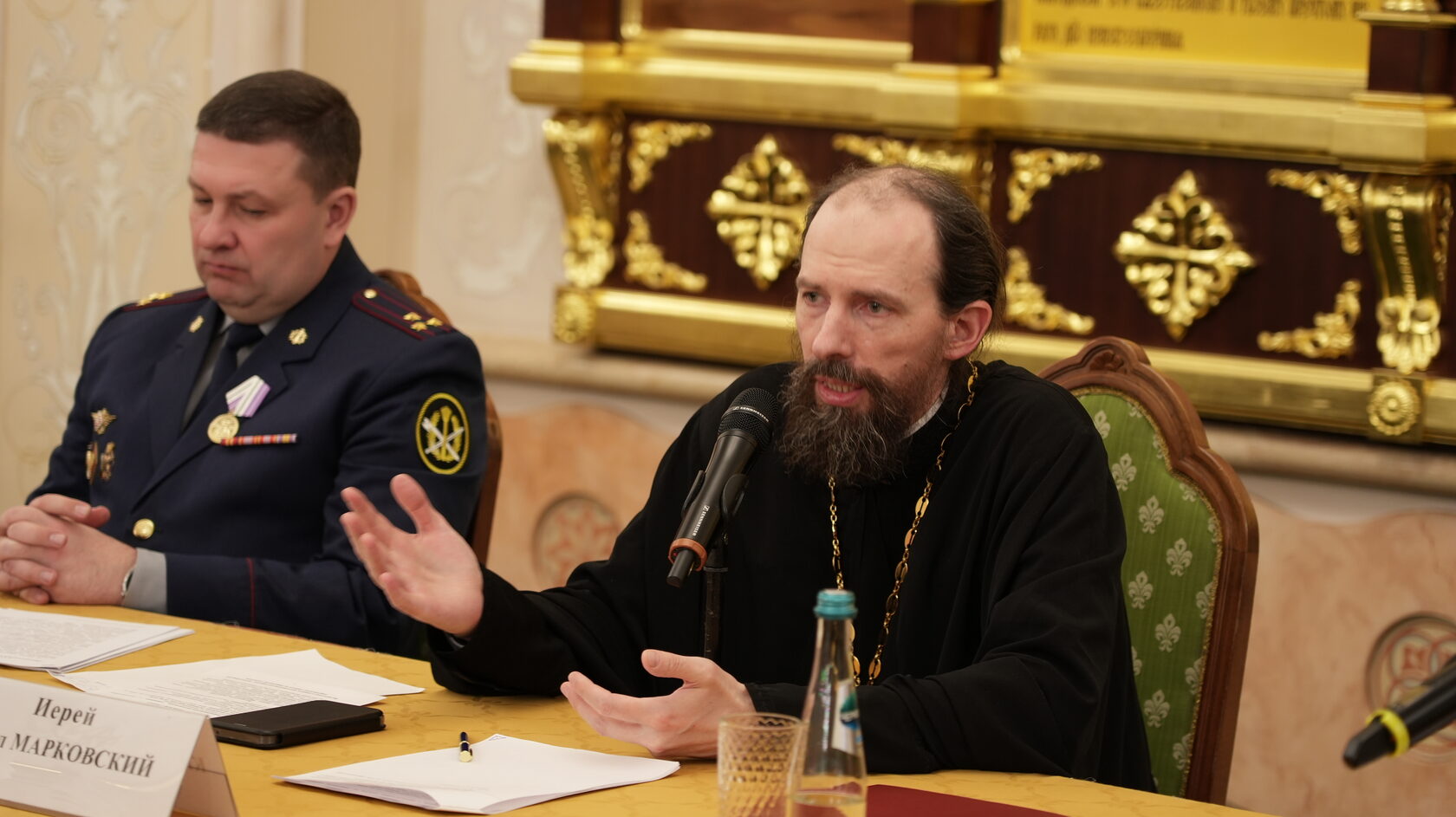 Далее с обстоятельным докладом по основным направлениям развития тюремной миссии Церкви в Российской Федерации выступил председатель Синодального отдела по тюремному служению иерей Кирилл Марковский. Священнослужитель выразил благодарность Минюсту России и ФСИН России за поддержку всех инициатив Русской Православной Церкви, реализуемых в пенитенциарных учреждениях, подчеркнув, что ряд таких инициатив, прежде всего касающихся развития института штатного духовенства в колониях и СИЗО, обоюдно исходил и от Минюста России, и от ФСИН России, что свидетельствует о движении навстречу друг другу и не может не вызывать чувства глубокого удовлетворения.