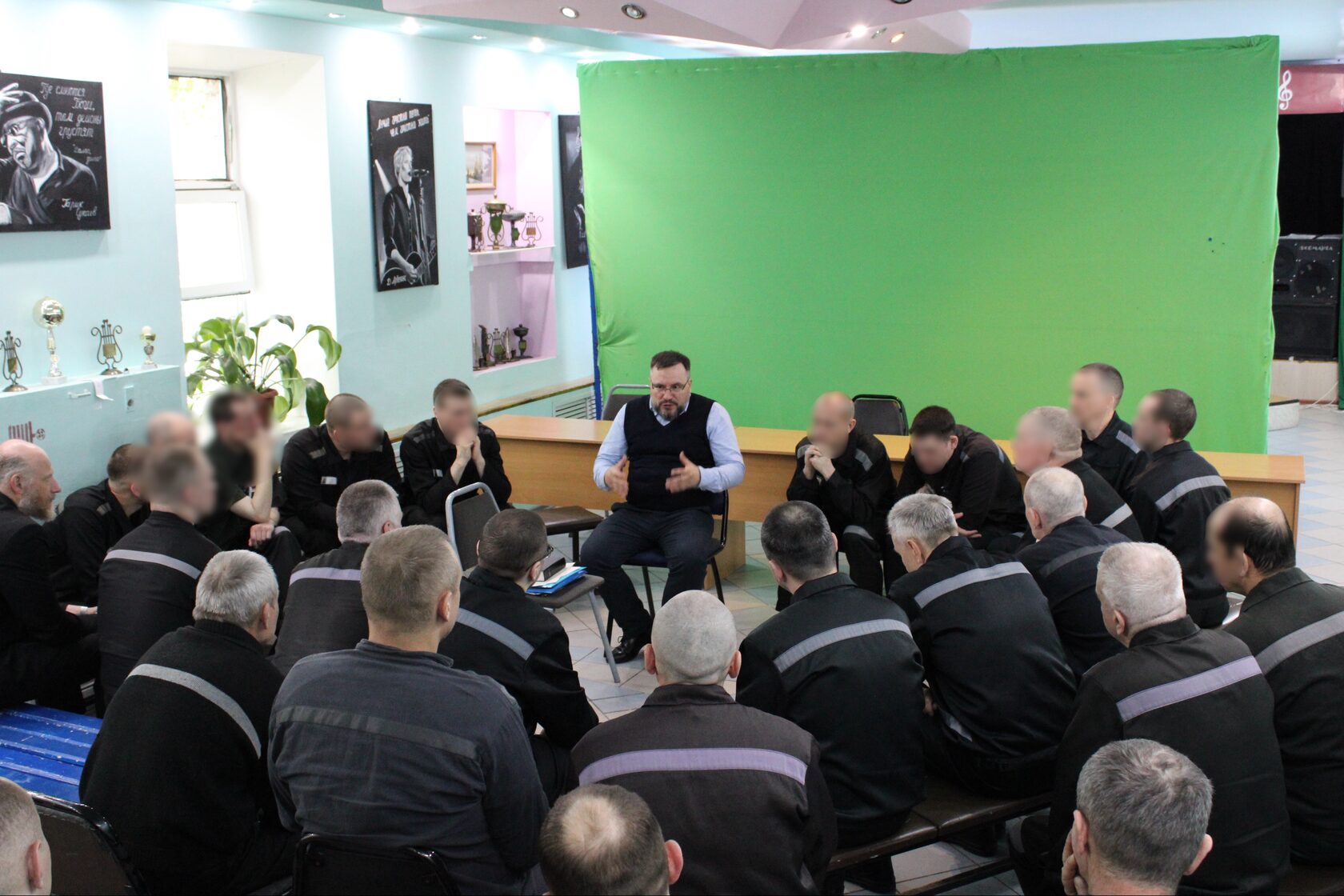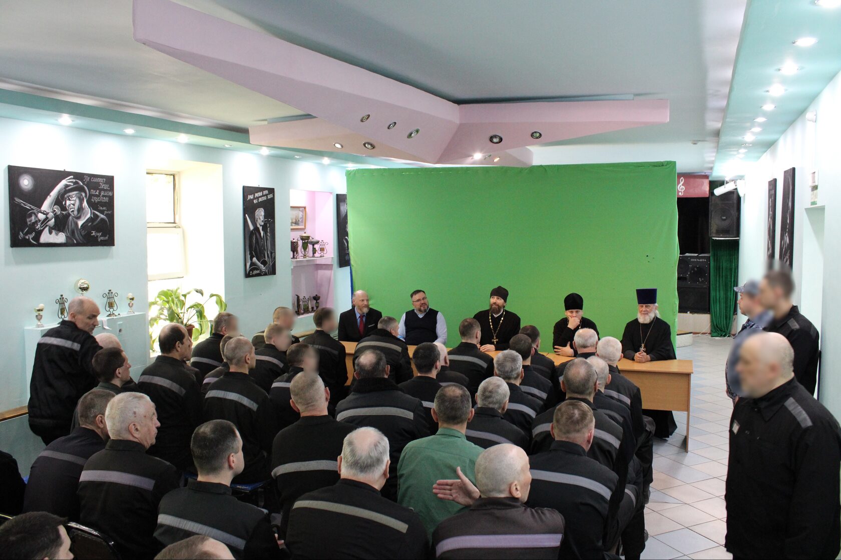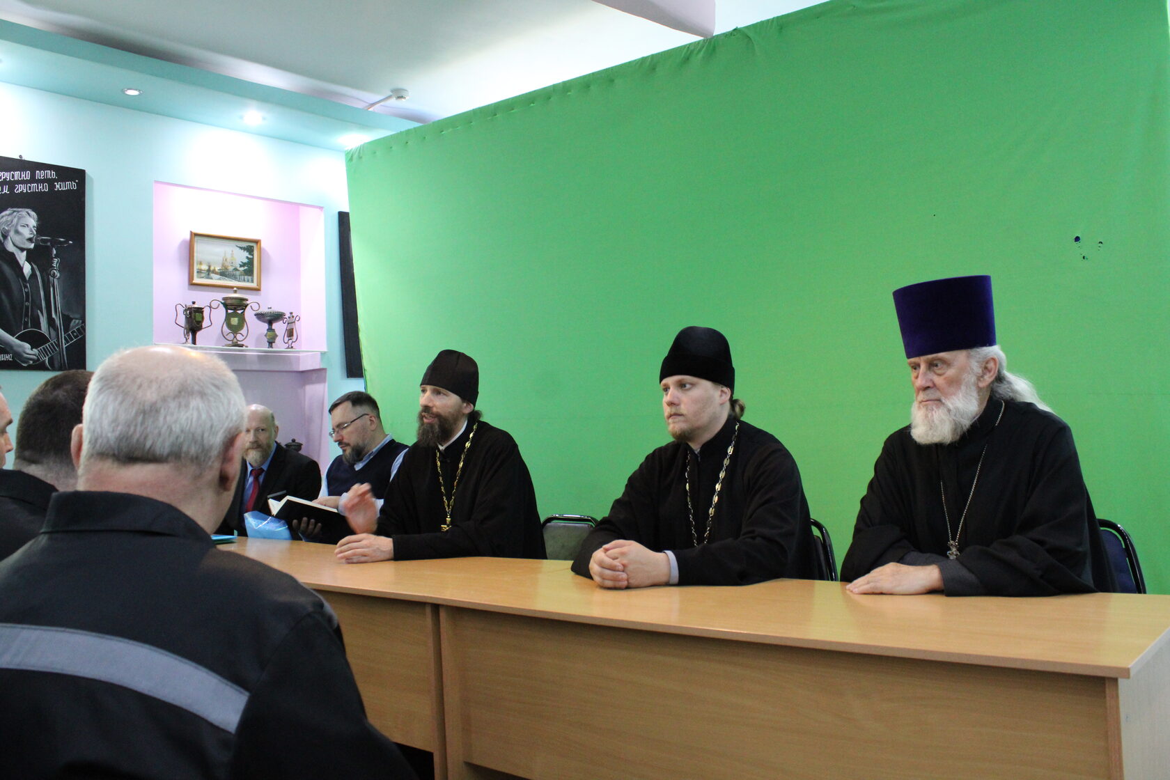 После богослужения иерей Кирилл Марковский провел рабочее совещание с врио начальника колонии Ильей Марамохиным, после чего в актовом зале учреждения состоялась беседа отца Кирилла с осужденными женщинами.