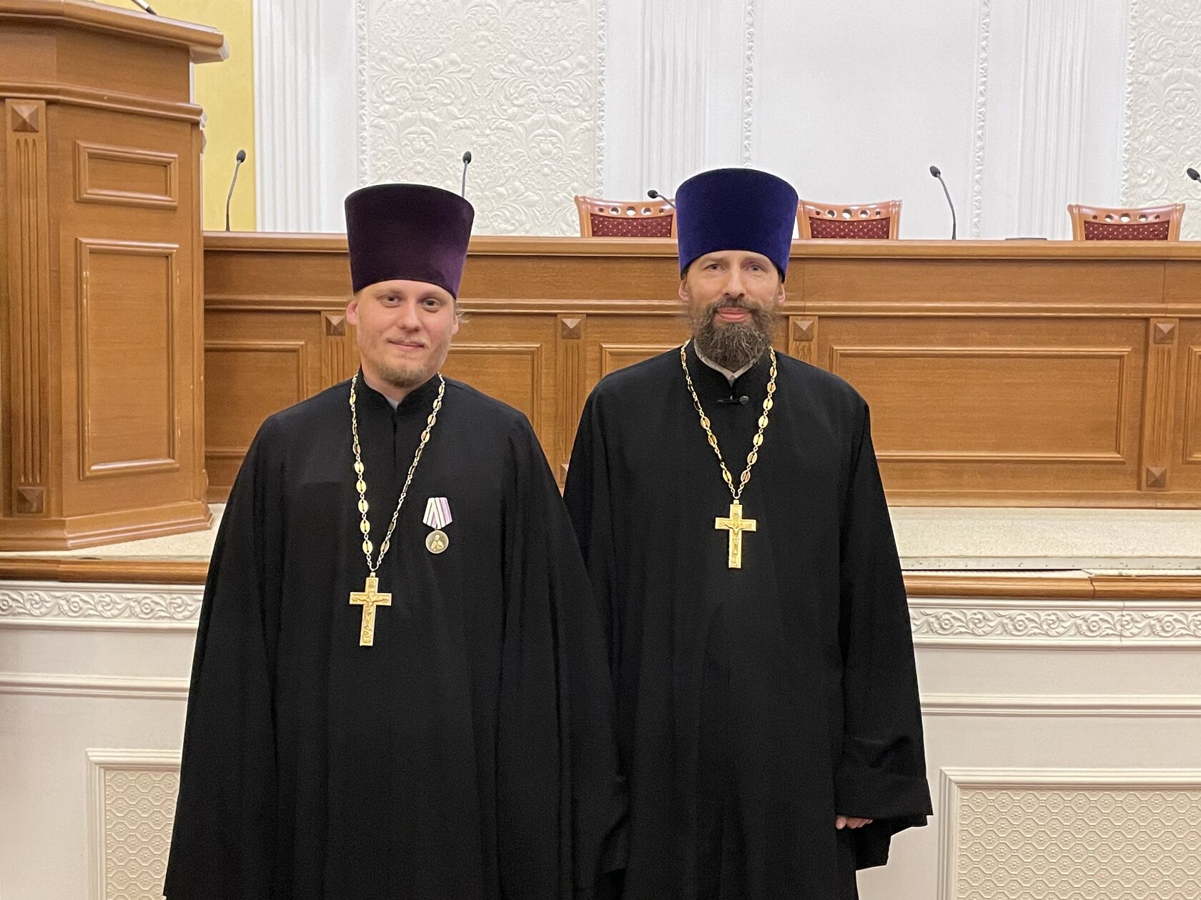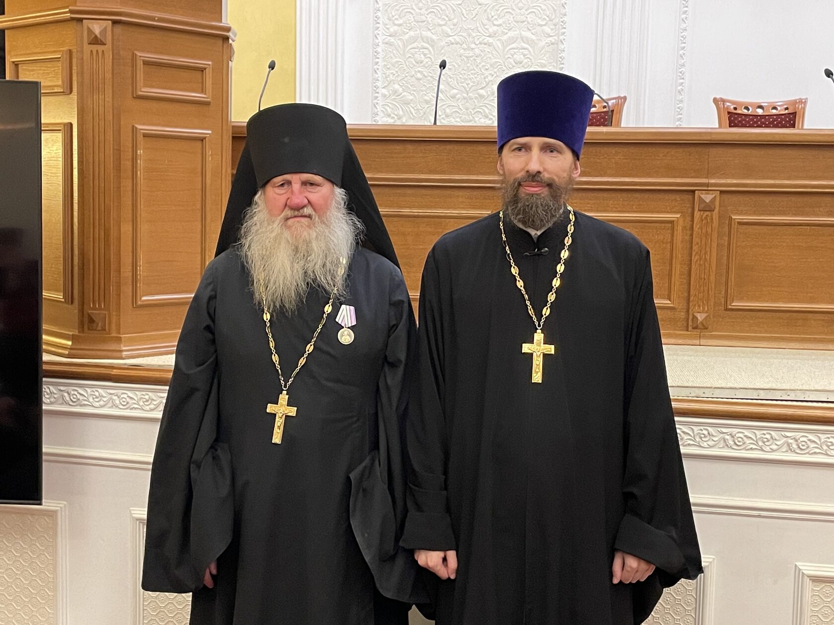 Далее за многолетнее служение в исправительном учреждении протоиерей Владимир Абрамов был награжден медалью Синодального отдела по тюремному служению святой Анастасии Узорешительницы третьей степени.