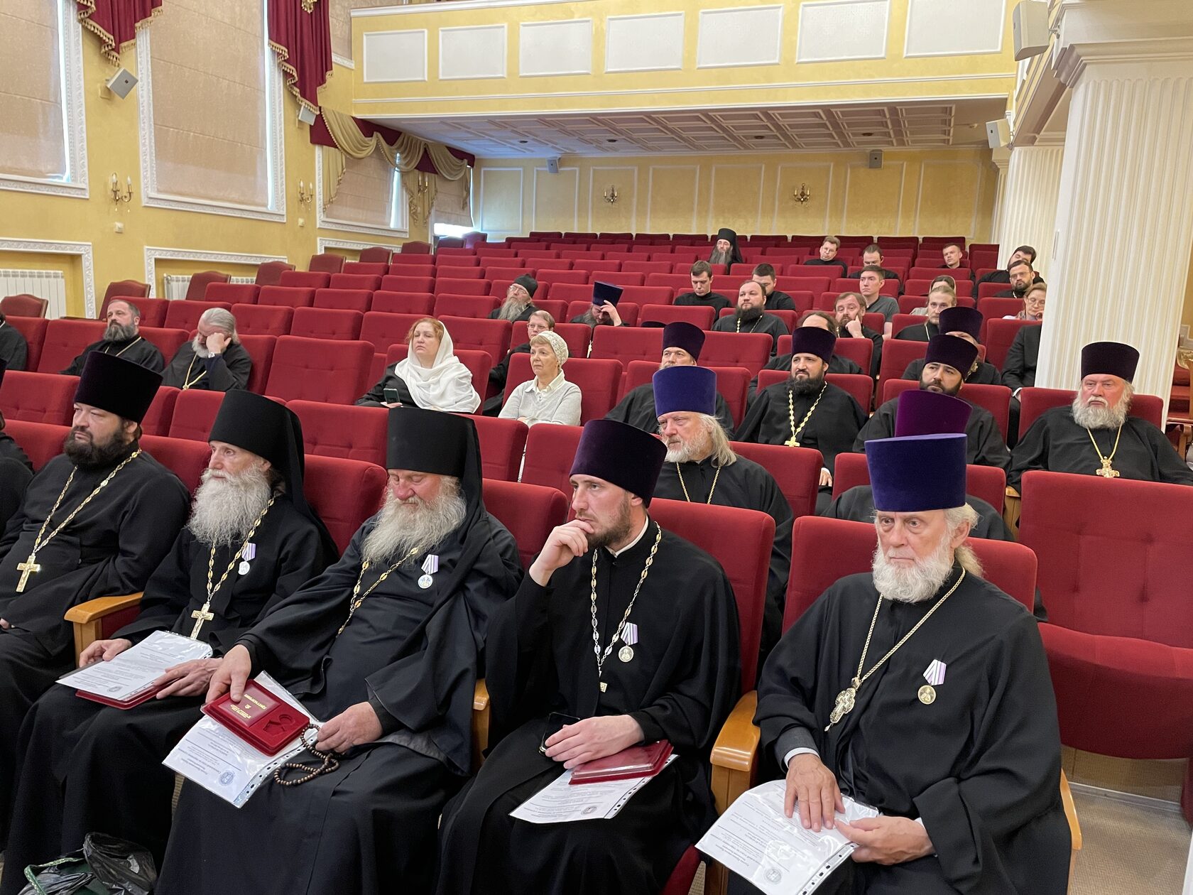 Перед началом встречи глава Синодального отдела вручил священнослужителям награды отдела. За веру, милосердие, вклад в развитие тюремного служения Русской Православной Церкви и многолетние труды в учреждениях уголовно-исполнительной системы Российской Федерации медалью Синодального отдела Русской Православной Церкви по тюремному служению святой великомученицы Анастасии Узорешительницы II-й степени были награждены руководитель епархиального отдела по тюремному служению Городецкой епархии протоиерей Алексий Гущин и иеромонах Макарий (Воронин). Медалей святой великомученицы Анастасии Узорешительницы III-й степени удостоены руководитель епархиального отдела по тюремному служению Нижегородской епархии, помощник начальника ГУФСИН России по Нижегородской области по организации работы с верующими иерей Алексий Калугин, руководитель епархиального отдела по тюремному служению Лысковской епархии, помощник начальника СИЗО-3 ГУФСИН России по Нижегородской области по работе с верующими иерей Максим Кутья, помощник руководителя епархиального отдела по тюремному служению Городецкой епархии иерей Роман Муравьев, иеромонах Серафим (Герасимов), протоиерей Александр Мужиченков, иерей Станислав Голик, иерей Александр Федотов, иерей Алексий Жиленко, окормляющие учреждения УИС Нижегородской области.