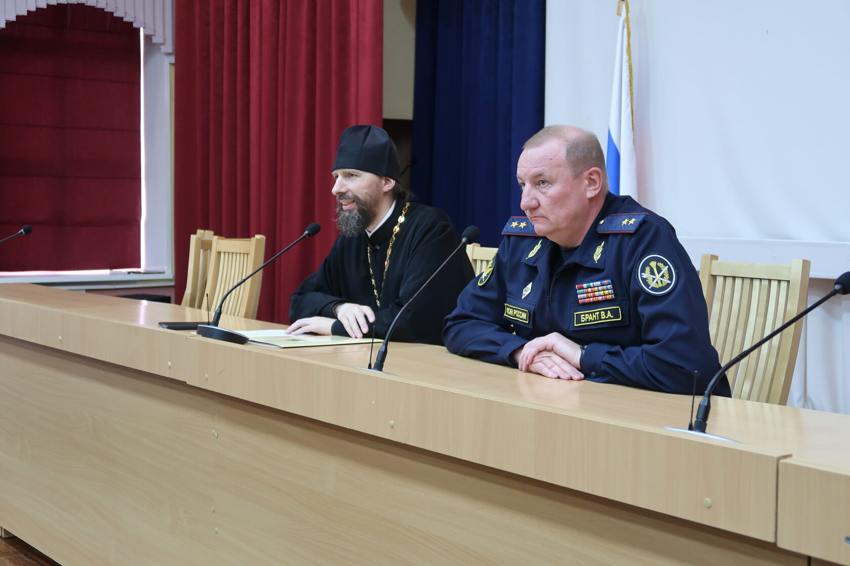 Представляя собравшимся гостя, начальник ГУФСИН Виктор Брант подчеркнул особую роль и значительный вклад Русской Православной Церкви в процессы воспитательной и социальной работы с осужденными. Помимо этого, он выразил слова благодарности и за окормление сотрудников ведомства, которые также нуждаются в поддержке со стороны духовенства.