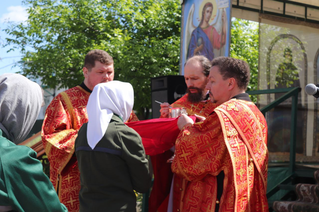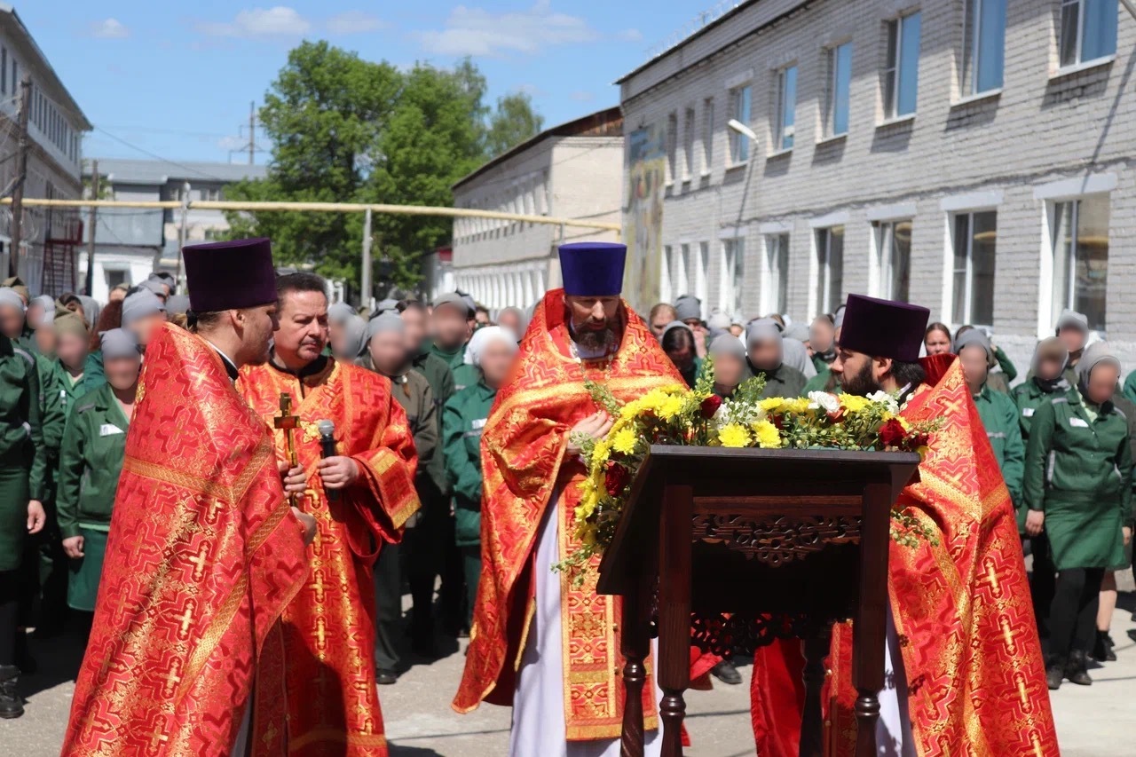 По благословению митрополита Нижегородского и Арзамасского Георгия на территории колонии непосредственно для праздничного богослужения был устроен помост и установлен престол под сенью. Это дало возможность присутствовать на Литургии значительно большему количеству осужденных, чем в колониальном храме преподобной Марии Египетской, расположенном на территории учреждения. Божественную литургию совершил иерей Кирилл Марковский в сослужении иерея Алексия Калугина и священника Василия Змэу, окормляющего учреждение.
