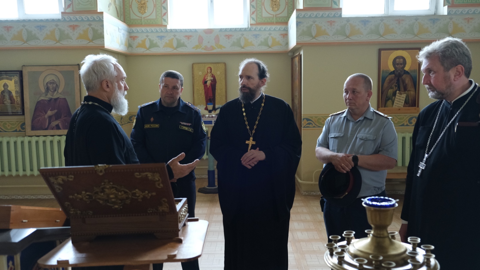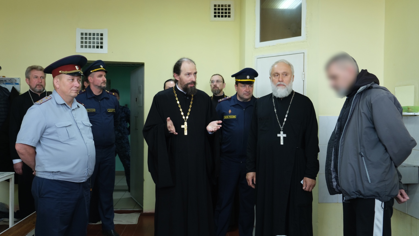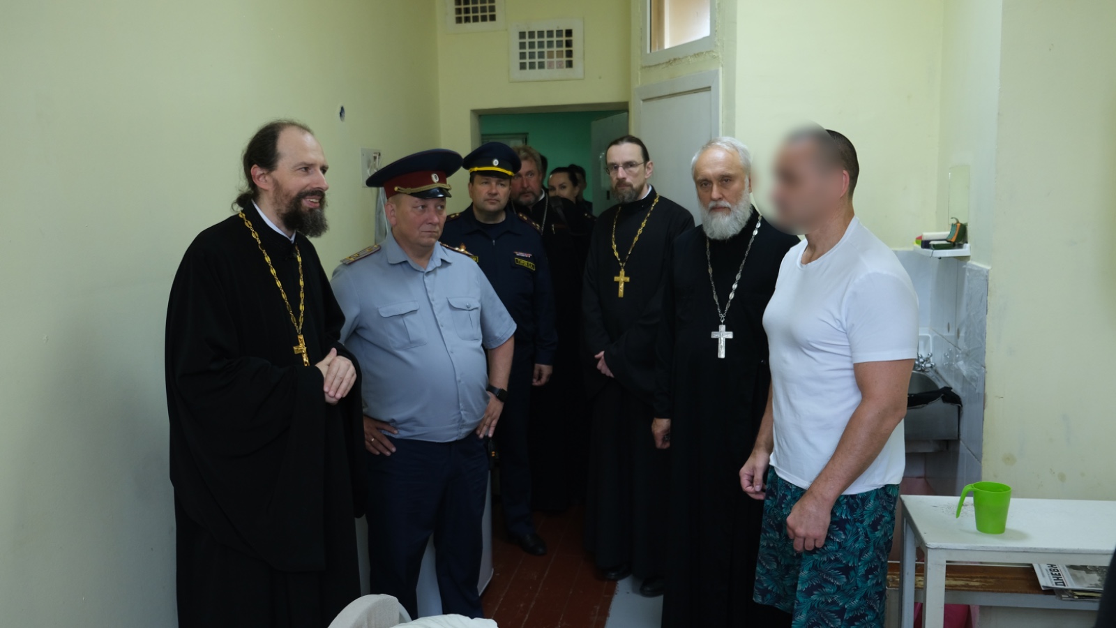 Во время посещения делегацию Синодального отдела и ФСИН России сопровождал врио начальника СИЗО-1 Александр Ануфриев, а также три помощника начальника следственного изолятора по работе с верующими.