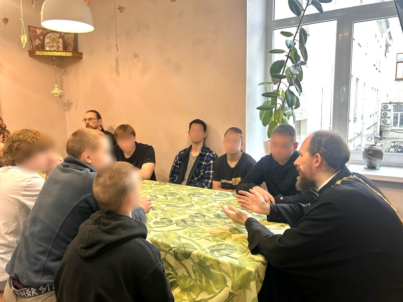 Гости ознакомились с деятельностью Центра святителя Василия Великого, встретились с проживающими там подростками. Иерей Кирилл Марковский побеседовал с ребятами о вере и духовных законах жизни, рассказал о том, как люди на своем горьком опыте убеждались в том, что невозможно обрести счастье и благополучие, совершая преступления и причиняя кому-то страдание и боль.