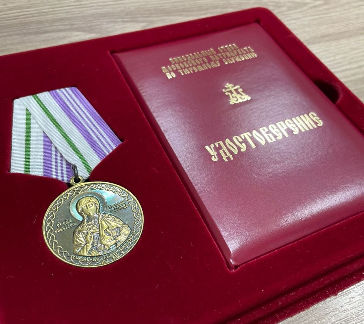 Сотрудник ГУФСИН Игорь Маслов удостоен высокой церковной награды. Медаль святой великомученицы Анастасии Узорешительницы III степени «За веру, милосердие и вклад в развитие тюремного служения Русской Православной Церкви» ему вручил помощник начальника ГУФСИН по организации работы с верующими иерей Флорентий Александров.