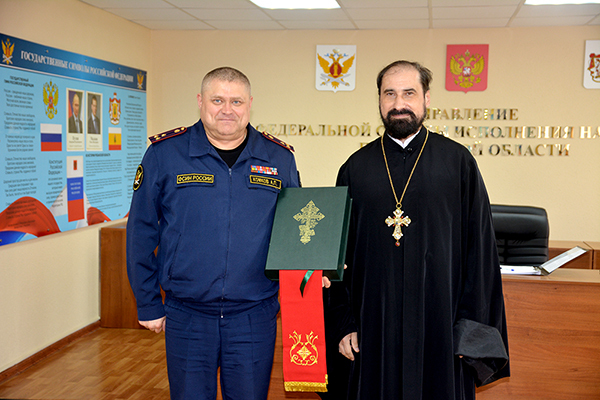 В завершение мероприятия игумен Иоасаф подарил начальнику УФСИН России по Рязанской области полковнику внутренней службы Александру Комкову Святое Евангелие, благословил сотрудников рязанского пенитенциарного ведомства, вручил им духовную литературу и окропил кабинеты Управления святой водой.
