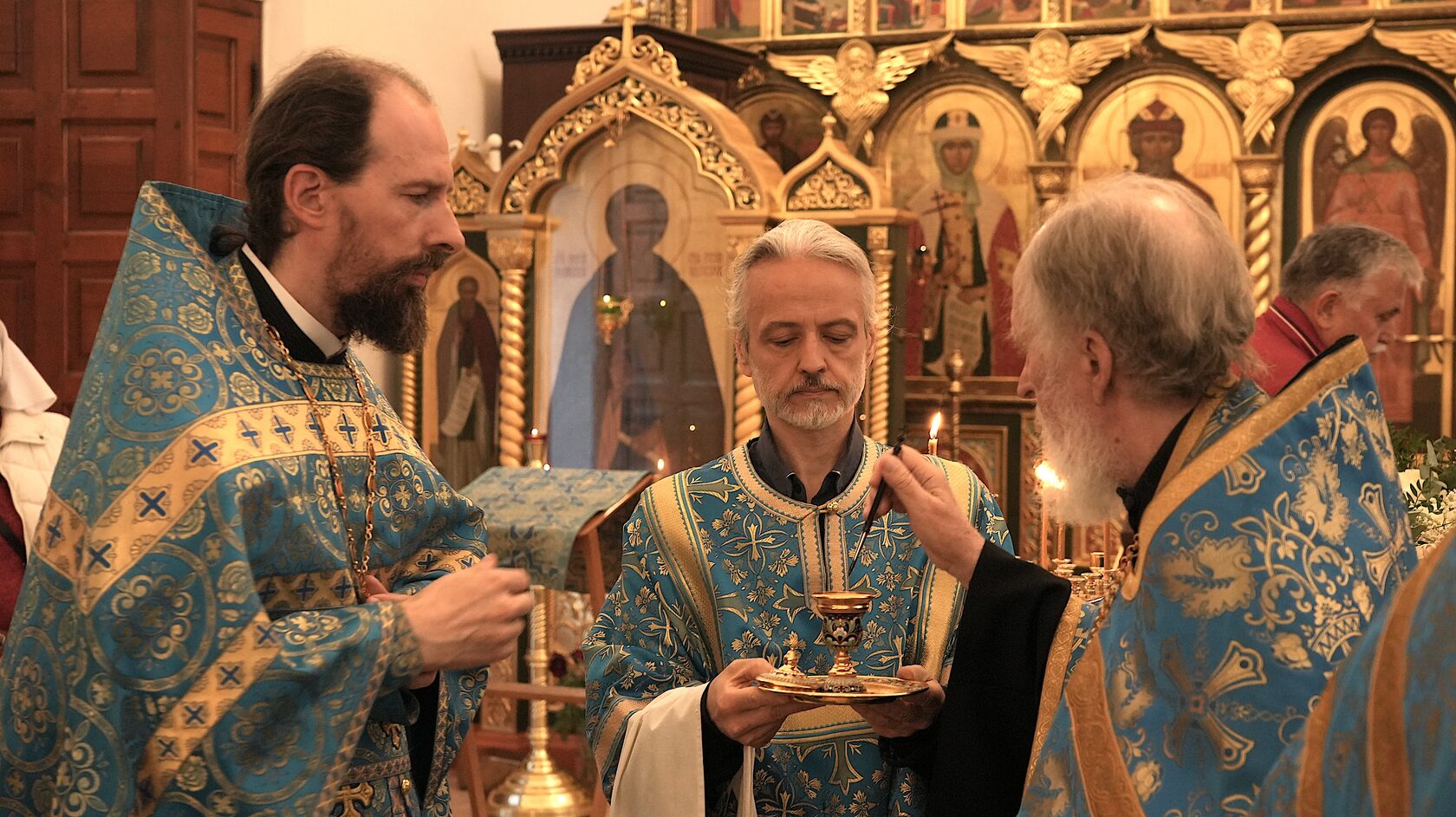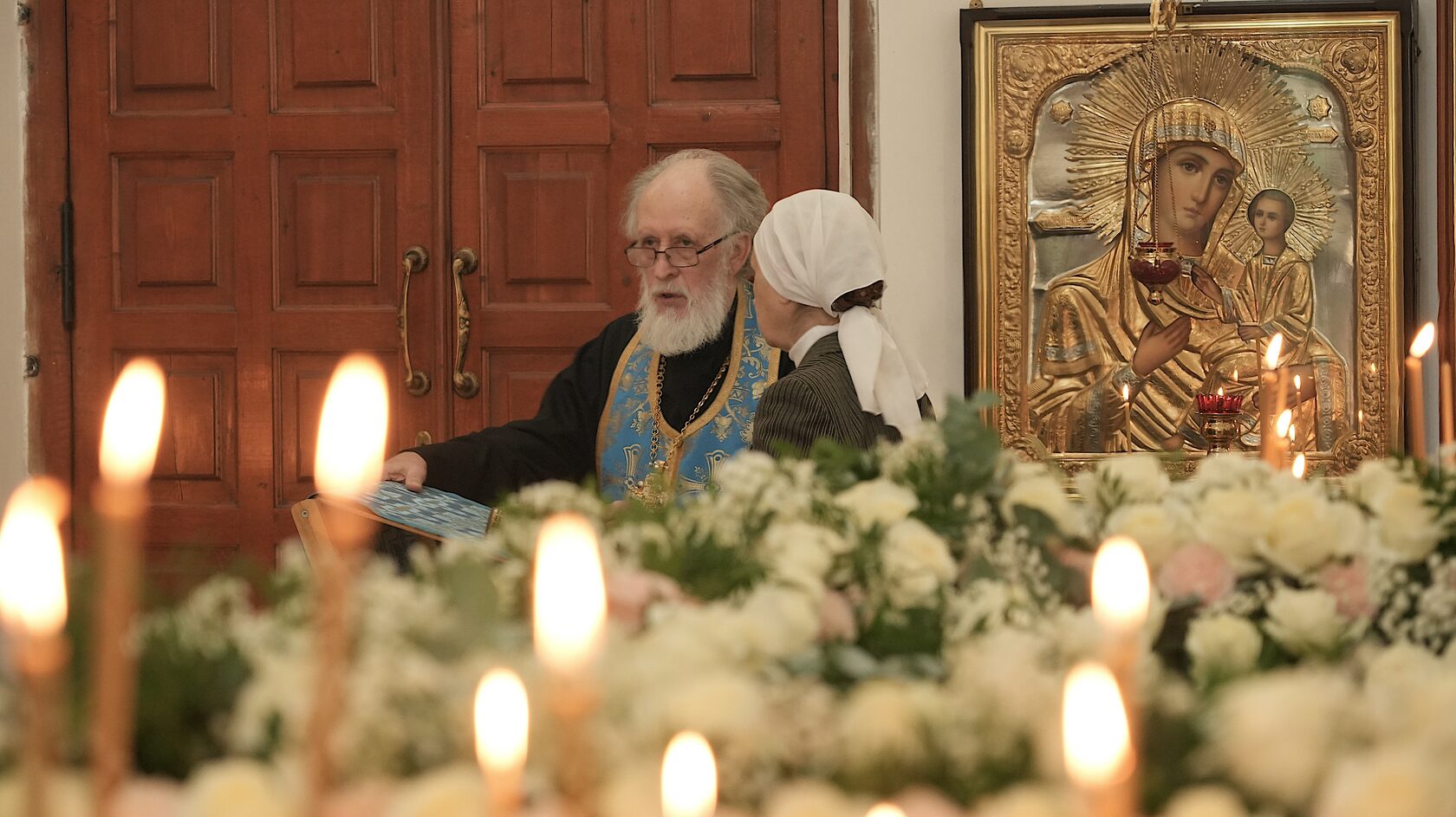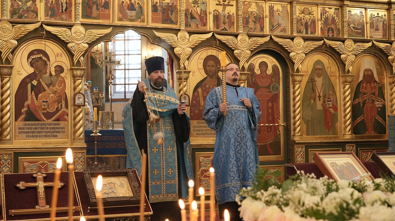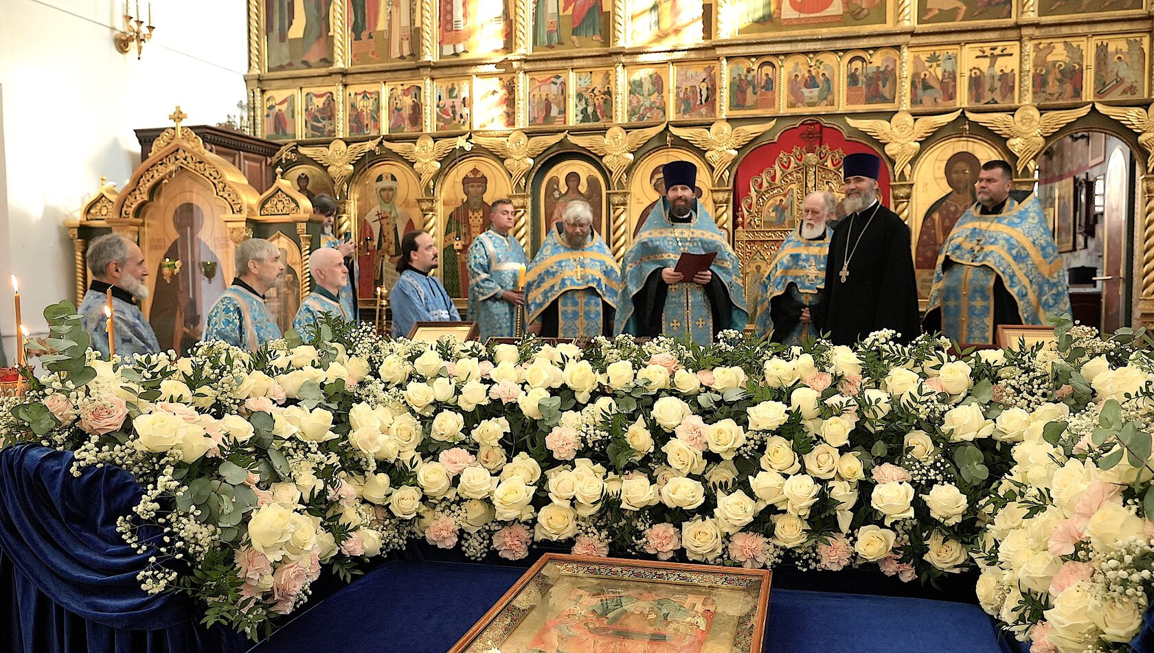 Перед началом службы благочинный Всехсвятского благочиния протоиерей Сергий Дикий представил духовенству, волонтерам и прихожанам храма нового настоятеля и выразил надежду, что они станут ему добрыми помощниками в несении ответственного послушания и что через эти труды молитвами Царицы Небесной Господь пошлет всем отраду и утешение.